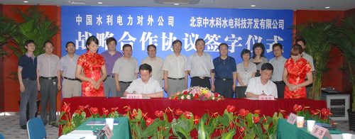 最后,中水科技总经理王德宽与中国水利电力对外公司副总经理王禹分别代表双方单位在协议书上签字。