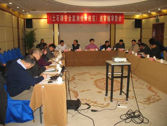 2011年 3月9~10日,水利部建设与管理司在北京主持召开了《土石坝安全监测技术规范》(送审稿()以下简称《送审稿》)审查会议。水利部国际合作与科技司、水利部大坝安全管理中心、三峡集团公司、中国水电顾问集团北京勘测设计研究院、长江勘测规划设计研究院、中水东北勘测设计研究有限责任公司、上海勘测设计研究院、南京水利科学研究院、长江科学院、小浪底水利枢纽建设管理局、辽宁省柴河水库管理局、南瑞集团公司以及中国水利水电科学研究院等单位的专家和修编组成员参加了会议。