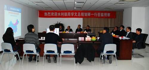 2011年12月22日,水利部总规划师兼规划计划司司长周学文莅临我院中水科技公司,视察了全国中小河流治理项目管理信息系统,听取了中水科技公司关于项目建设情况的汇报,对系统下一步建设、运行和维护提出了指导意见。水利部规计司汪安南副司长、张祥伟处长、杜国志处长,财政部经建司夏喜全处长、吴盖副处长,我院贾金生副院长及科技处阮本清处长等陪同视察。中水科技公司总经理王德宽、总经理助理王桂平代表项目组进行了工作汇报。