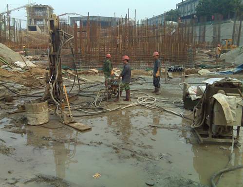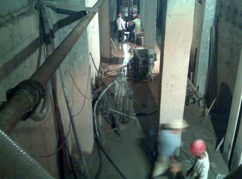 受业主委托,中水科技公司承担了该项工程的防渗处理工作。在院及公司相关领导的关心、支持和指导下,现场技术人员采用自主研发的膏浆技术(SK-P膏浆外加剂)结合稳定性浆液,科学组织、精心施工,克服了厂房内温度高(平均温度在50℃以上)、通风差、施工条件恶劣等困难,成功处理了该强透水性砂卵石地层的渗漏难题。经过2个雨季的检验,防渗处理效果显著,得到了业主的充分肯定和好评。