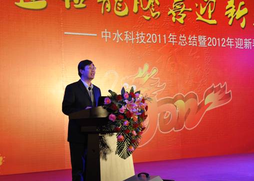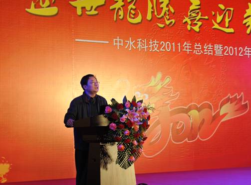 总经理王德宽代表公司领导班子作2011年度工作总结报告。王德宽总经理首先简要介绍了中水科技“十二五”发展思路与发展目标,然后从市场开拓、项目履约、科研创新、科学管理、队伍建设、财务状况、党建文明几个方面,全面总结了2011年度工作,同时认真分析了公司目前存在的问题与不足,并对2012年工作进行了部署。