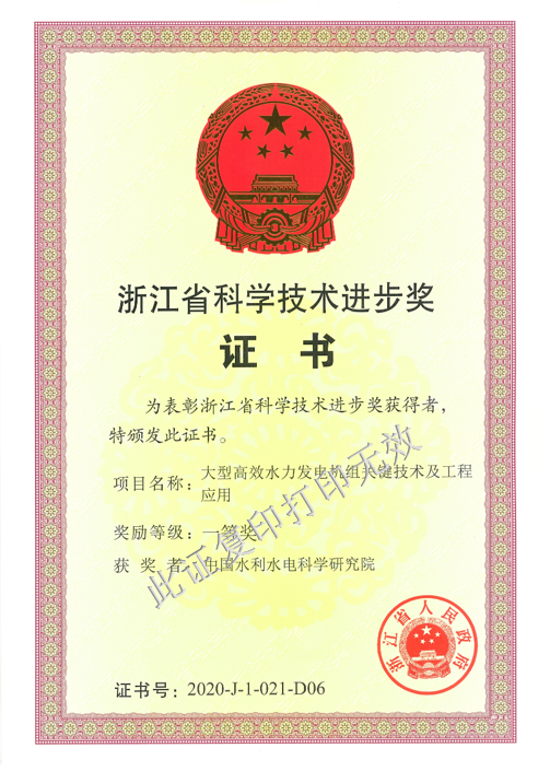2020年-浙江省科学技术进步奖-大型高效水力发电机组关键技术及工程应用