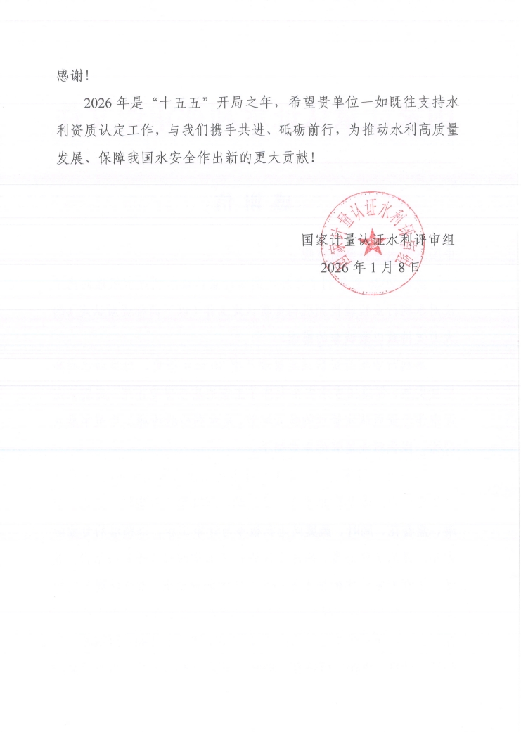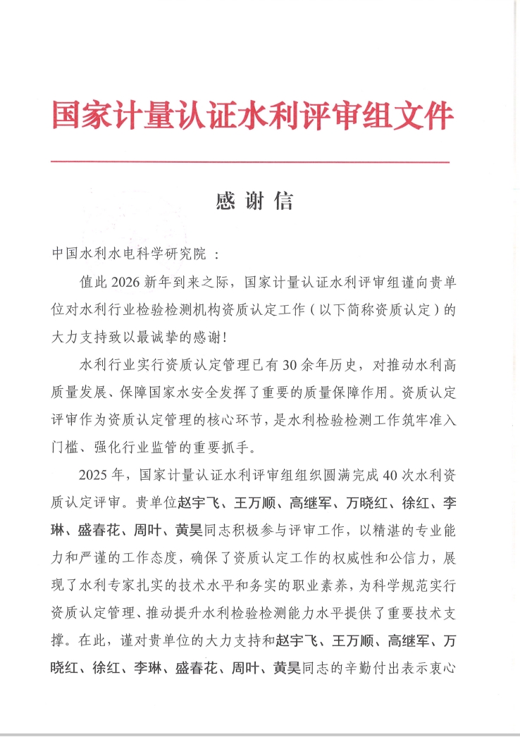 感谢信-国家计量认证水利评审组